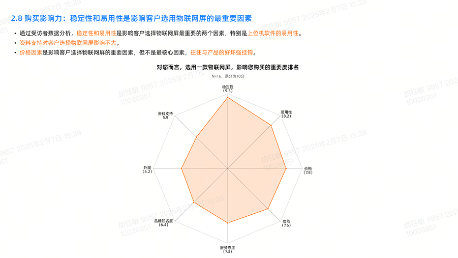 客户最关注稳定性、易用性、价格,其次是性能与服务。