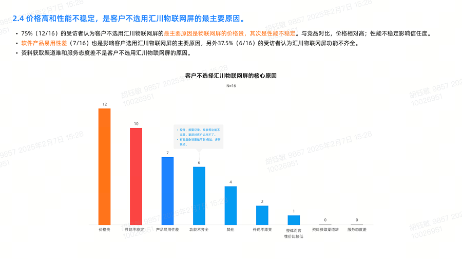 易用性差、功能不齐备、价格偏高是用户不选择我们的主要原因;